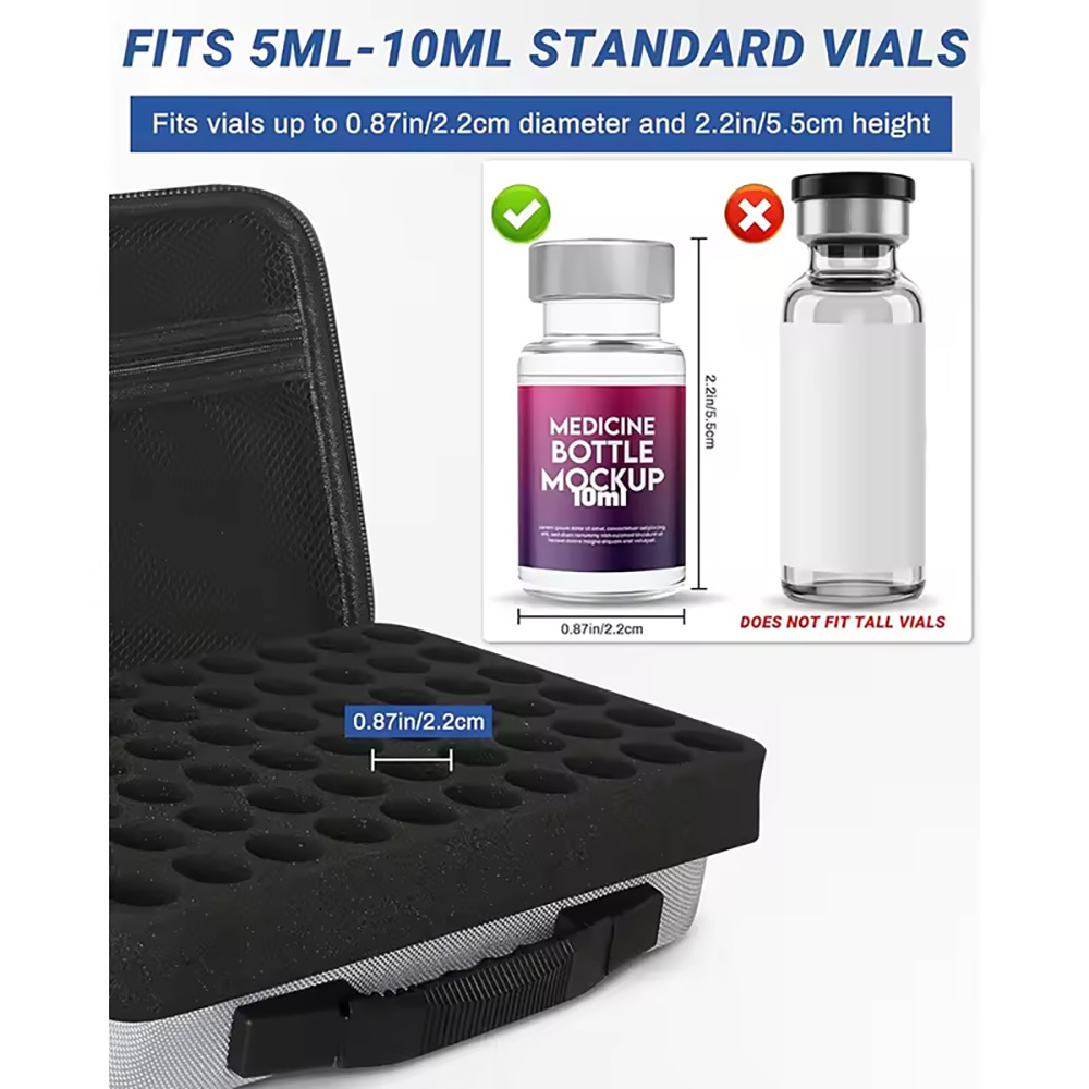 60 Slots Diabetic Insulin Peptide Fridge Carrying Case Vial Holder Storage Protector Bag Fits Standard 10ml Vials, Insulin Cooler Travel Kits Case Organizer Diabetes Protector